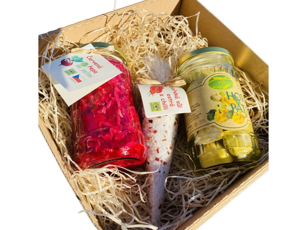 Dárková sada - červená řepa se zelím, chilli sůl a horňácké patizonky